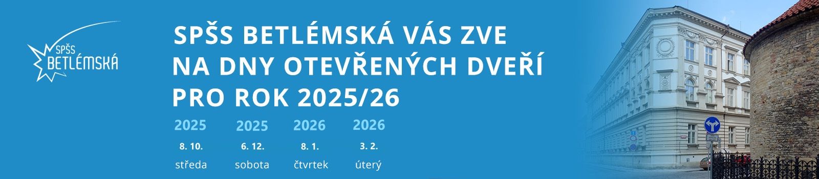15. prosinec 2025Vedení školy, pedagogický sbor a maturitní ročníky vás srdečně zvou na Maturitní ples SPŠS Betlémská, který se uskuteční 4. 2. 2026 od 19h ve Velkém sálu Lucerny. Těšit se můžete na imatrikulaci prvních ročníků, slavnostní nástup maturantů, předtančení, bohatý program, tombolu a večer plný zábavy, radosti...