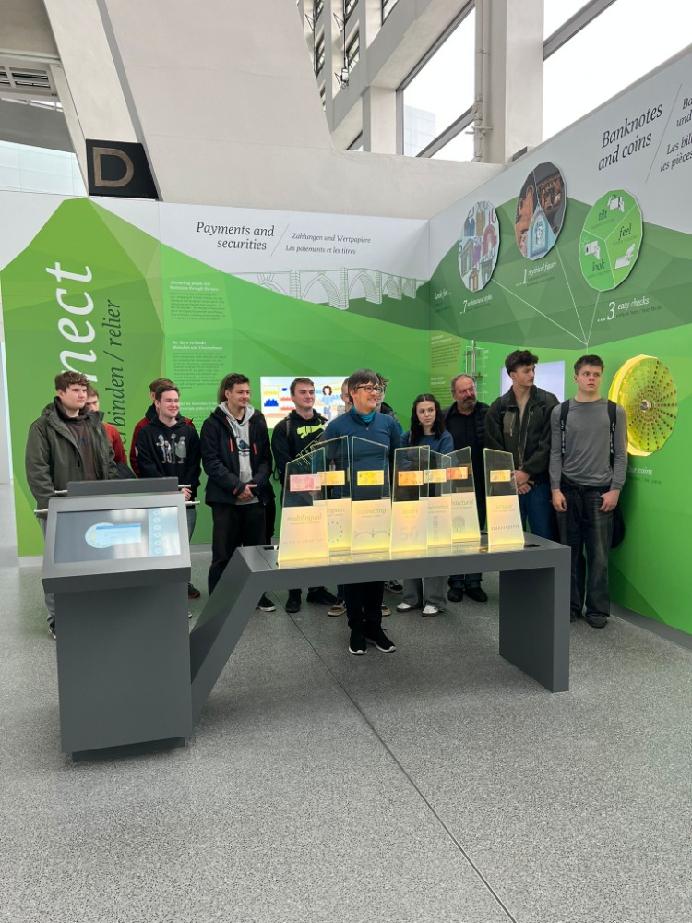 Měli možnost si prohlédnout vstupní prostory a symbolické místo s vlajkami členských zemí eurozóny.